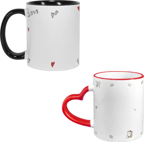 Choose from a large collection of designs and colours. And select the type of mug you want, ceramic or stainless steel, with a normal or heart shaped handle.