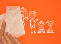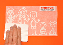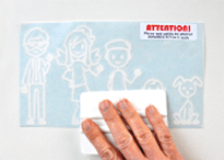 Lorsque tu as retiré le papier plus épais, applique le film avec l'autocollant sur la surface que tu as choisie. Lorsque l'autocollant a été appliqué, frotte les figurines pour t'assurer qu'elles sont bien collées sur la surface et que toutes les bulles d'air ont disparu.