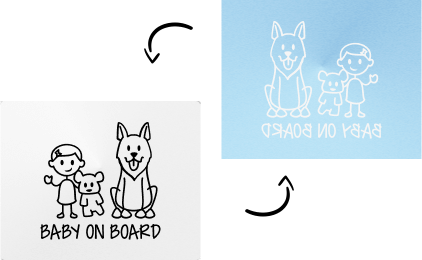 Choisis le vinyle noir ou blanc et la taille en fonction de la surface sur laquelle tu vas appliquer le sticker. Choisis Inversé si l'autocollant doit être placé à l'intérieur d'une voiture.